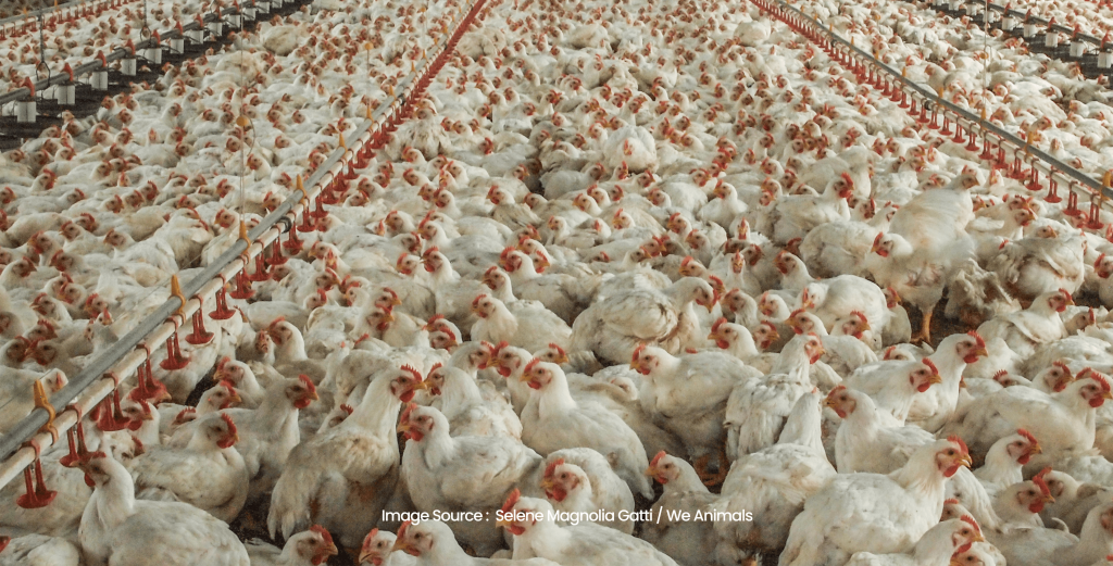 Bahkan dengan meningkatnya jumlah konsumsi dan populasi ayam di Indonesia, industri peternakan di Indonesia belum diimbangi dengan menerapkan standar kesejahteraan hewan yang semestinya. Masih banyak industri peternakan yang tidak mementingkan kesejahteraan hewan sehingga berdampak pada kualitas daging dan keamanan pangan masyarakat Indonesia.